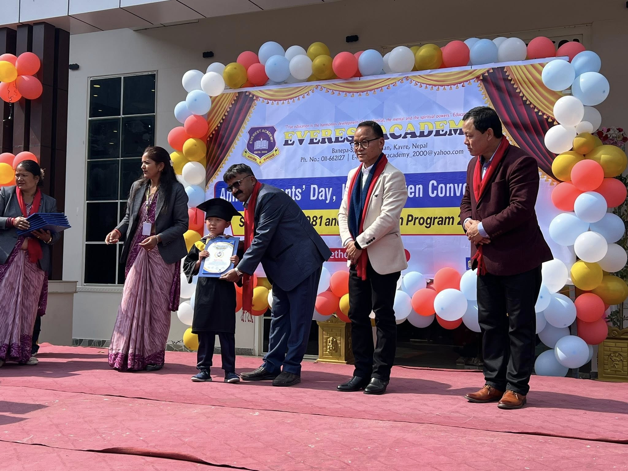 एभरेस्ट एकेडेमी बनेपाको अभिभावक दिवस, किन्डर गार्टेनको दिक्षान्त समारोह, एसईई २०८१ मा उर्तिण विद्यार्थीहरुलाई सम्मान तथा विदाई, स्पोर्टस सप्ताहको समापन र पुरस्कार वितरण समारोह भव्य पर्व जस्तै भएको थियो ।