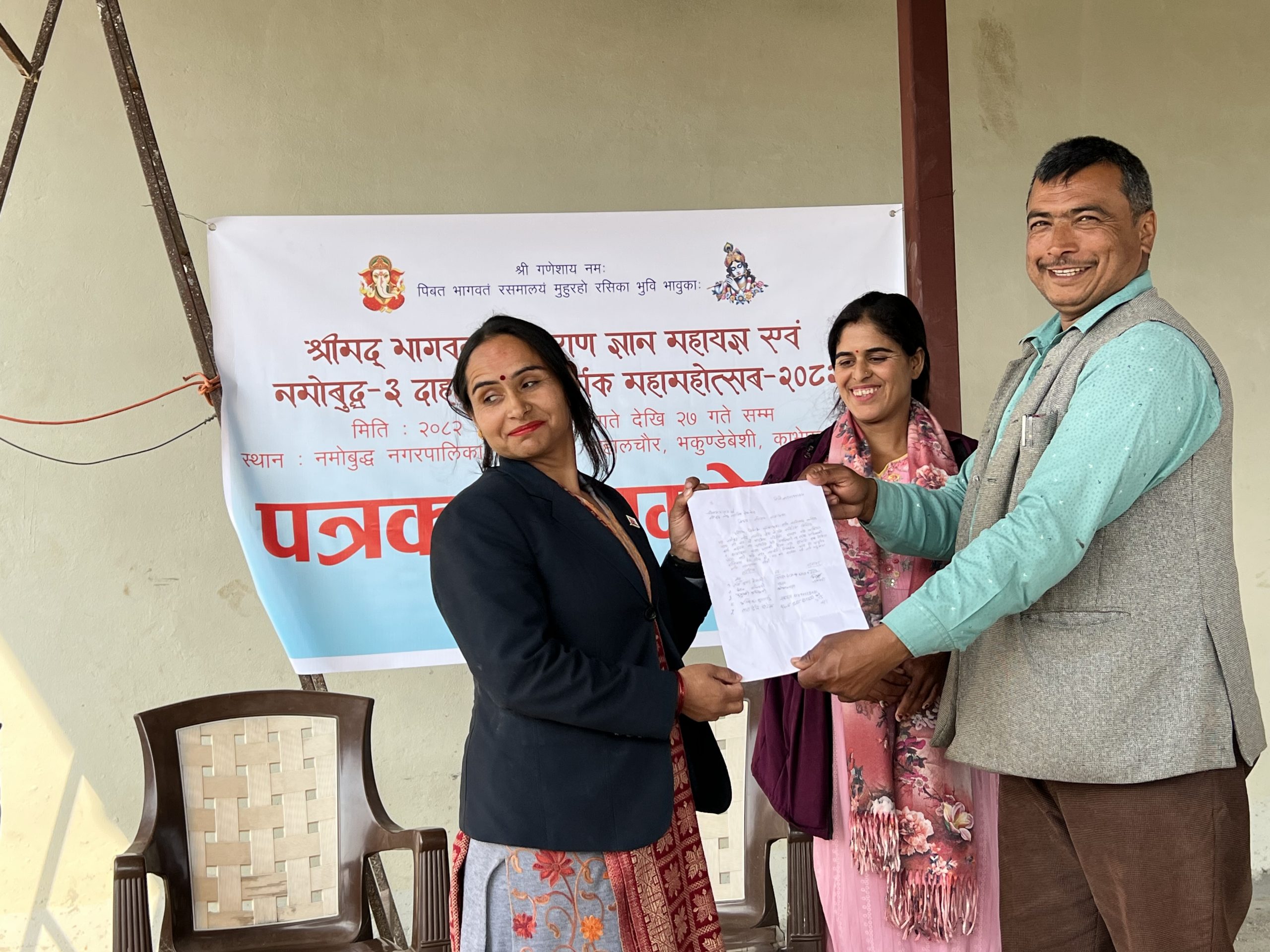 करीब दुई वर्षअघि नमोबुद्ध–३ दाहालचौरमा ज्येष्ठ नागरिक सेवा केन्द्रको भवन निर्माण गर्ने उद्देश्यले संस्था दर्ता गरिएको थियो। सोही उद्देश्यअनुसार विभिन्न कार्यक्रम सञ्चालन गर्दै आएको संस्थाले गत महिना श्रीमद् भागवत महापुराण ज्ञान महायज्ञ एवं नमोबुद्ध–३ दाहालचौर धार्मिक महोत्सव आयोजना गरेको थियो।