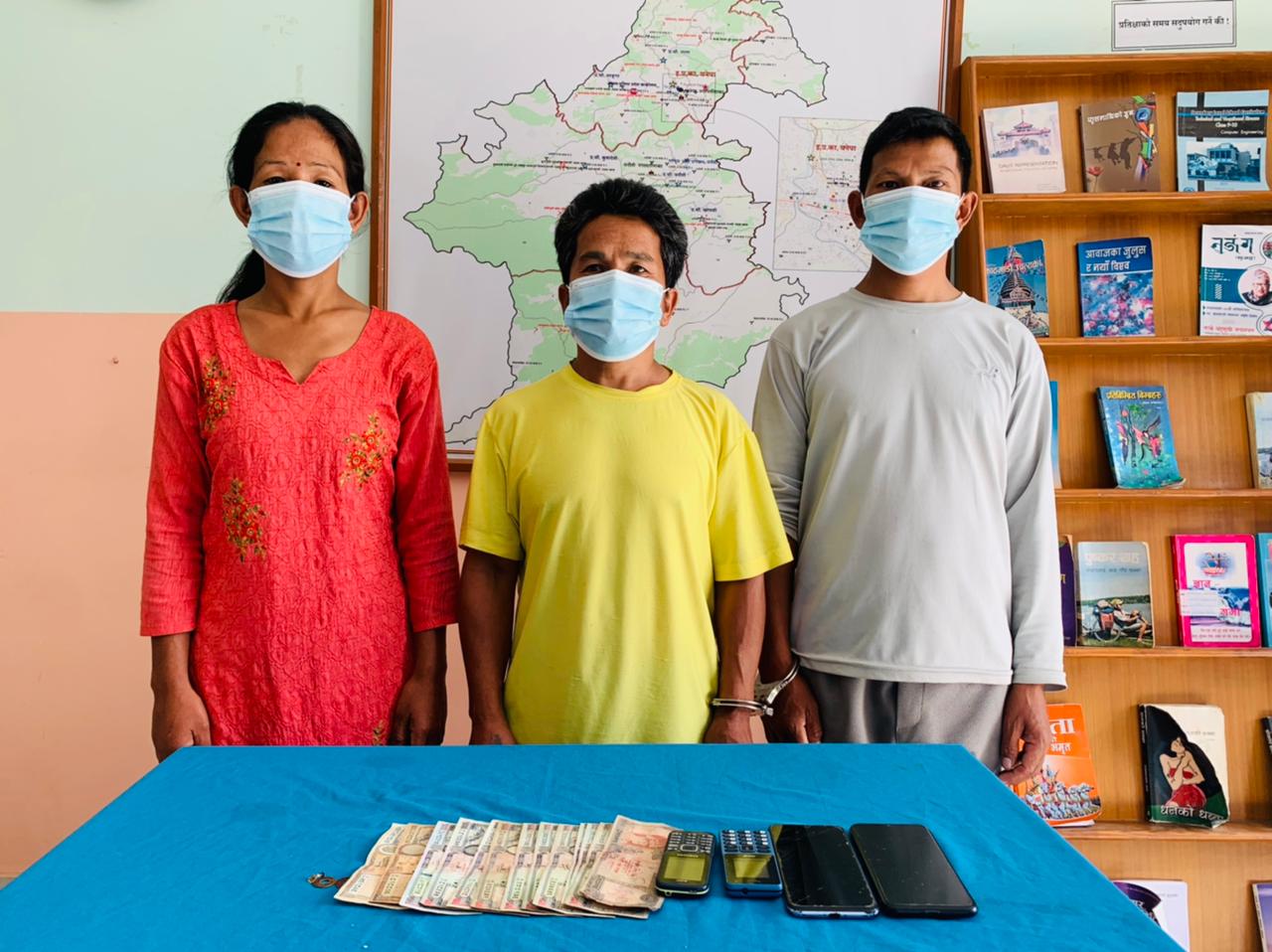 प्रहरीले तीन जनालाई पक्राउ गरि डाका तथा चोरि गर्न नहुने कसुरमा सम्मानित जिल्ला अदालत काभ्रेपलाञ्चोक बाट दिन ७ (सात) को म्याद लिई अनुसन्धान भईरहेको तथा घटनामा संलग्न अन्य व्यक्तिहरुको पहिचान तथा खोजतलास भई रहेको जनाएको छ । प्रहरीले खानीखोला गा.पा ०६ घर भई हाल पनौती न.पा. ०४ बस्ने बर्ष ३६ कि सरिता तामाङ, सोही गा.पा. ०२ बस्ने बर्ष ४१ को विचारमान गोले र खानीखोला गा.पा. ०२ भई हाल धुलिखेल न.पा. १२ शंखुपाटी बस?ने बर्ष ४० को साङगे थोकरलाई पक्राउ गरेको हो । पिडितले प्रहरीलाई लुटपाट एक लाख त्रिचालिस हजार नगद, पुरानो पैसा आधा माना जति भएको थैलो समेत, सुनको औठी १ तोला, सुनको ढुङग्री आधा तोलाको सुनको तिलहरी आधा तोलाको ( जम्मा २ तोला सुनको गरगहना लुटपाट गरेको जाहेरी दिएका थिए ।