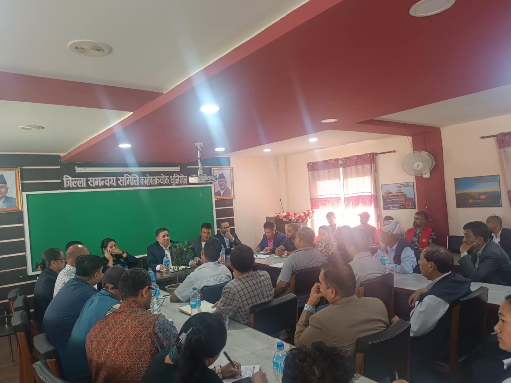 बैठकमा जिल्ला समन्वय प्रमुख दीपक गौतम, जिल्ला प्रहरी कार्यालय काभ्रेको प्रमुख एसपी बसुन्धरा खड्का, राष्ट्रिय अनुशन्धानको प्रमुख शेरजङ्ग चन्दको उपस्थिती थियो ।