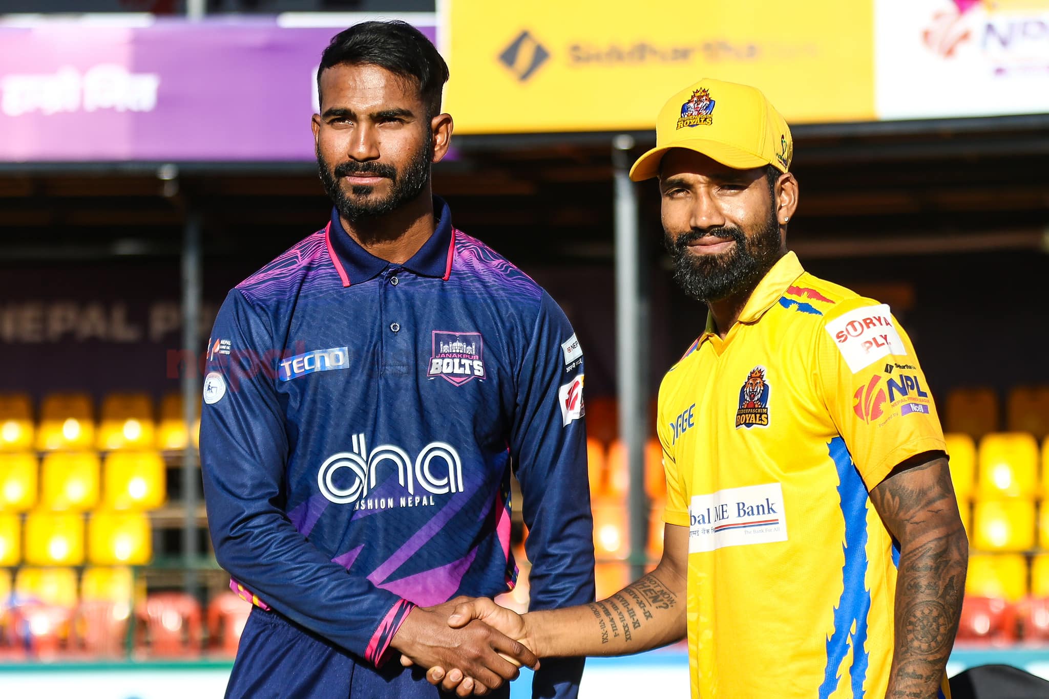 नेपाली क्रिकेटको महाकुम्भ एनपिएलको फाइनल खेल त्रिवि क्रिकेट मैदान कीर्तिपुरमा दिउँसो १२ः१५ बजे सुरु हुनेछ । सुदूरपश्चिम रोयल्सको कप्तानमा दीपेन्द्रसिंह ऐरी छन् भने जनकपुर बोल्ट्सको कप्तानमा आशिफ शेख रहेका छन् ।
