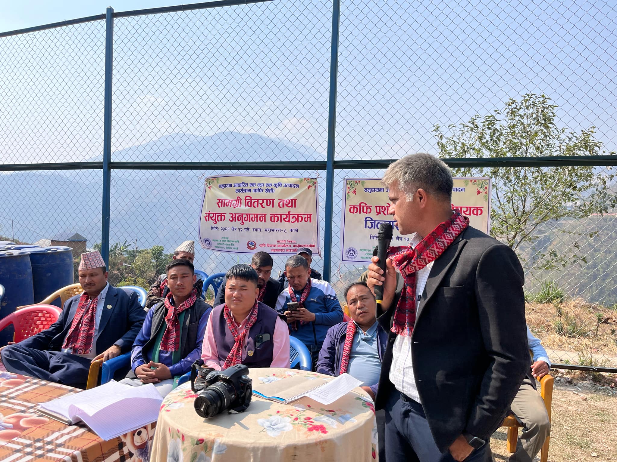 केन्द्रिय कफी उत्पादक सहकारी संघका अध्यक्ष तुलसीराज धितालले काभ्रेपलाञ्चोकको डाँडापारि क्षेत्रमा कफी उत्पादन राम्रो भएको बताउनुभयो । अरु ठाउँमा छहारी विना नफलेको कफी महाभारतमा विना छहारीको कफी फलेको र गुणस्तर पनि रहेको भन्दै अझ यसको तत्कालिन फल लिएर आम्दनी गर्ने मात्रै नहेरी दीर्घकालिन रुपमा उत्पादन गर्न छहारीको व्यवस्थापन, सिंचाईको सुविधा र लाग्न सक्ने रोग नियन्त्रणको काममासमेत जोड दिन आग्रह गर्नुभयो ।