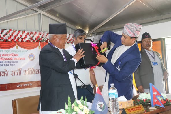 भकुण्डेवेशी÷नमोबुद्ध नगरपालिकाको दोस्रो नगर सभाको सातौँ अधिवेशनको पहिलो बैठक सम्पन्न भएको छ । नगर प्रमुख कुन्साङ लामाले आ.व. २०८२÷०८३ को नीति तथा कार्यक्रम प्रस्तुत गर्नुभएको छ । नगर उप–प्रमुख रत्न बहादुर लामाले सोही आर्थिक वर्षको लागि कुल अनुमानित बजेट रकम रू. ८० करोड ७३ लाख २३ हजार १ सय ६० पेश गर्नुभएको छ ।