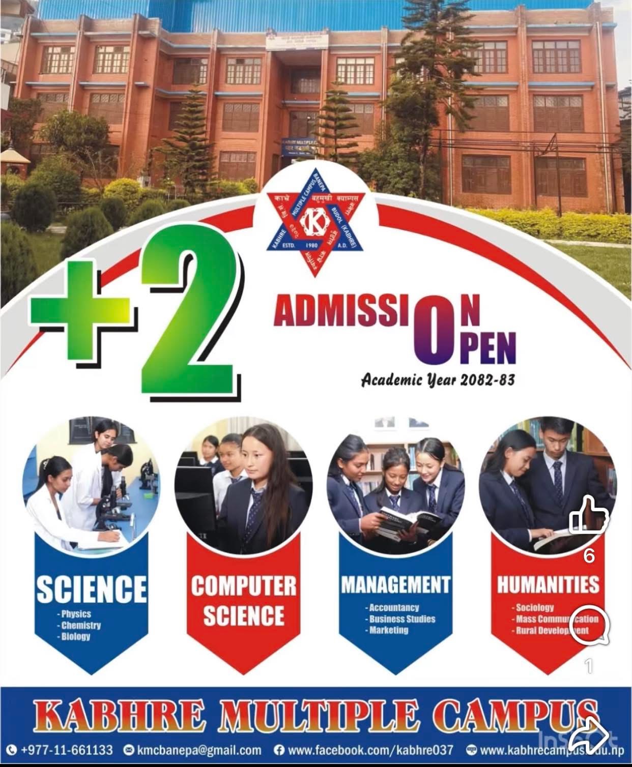 काभ्रे बहुमुखी क्याम्पसले प्लस टुमा साइन्स कम्प्युटर साइन्स व्यवस्थापन र मानविकी संकायमा भर्ना खुलाएको छ। काभ्रे जिल्लाको सबैभन्दा पुरानो क्याम्पस काभ्रे क्याम्पसमा यथेष्ठ भौतिक पूर्वधार उच्च गुणस्तरीय प्राध्यापकहरुले अध्यापन गराउने गर्नुहुन्छ ।