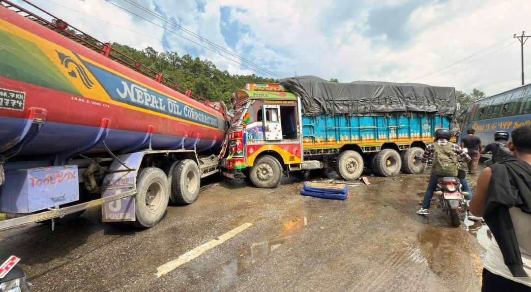 चितवनबाट वीरगन्जका लागि आउँदै गरेको ना ६ ख २११९ नम्बरको यात्रुवाहक बसको चालक साइडको टाएर पडकेर अनियन्त्रित भई हेटौँडाबाट चितवनतर्फ जाँदैगरेको ना ६ ख ८१८० नम्बरको मालवाहक ट्रकसँग ठक्कर खाएको थियो । ट्रक अनियन्त्रित भई काठमाडौँबाट बाराका लागि आउँदैगरेको ना ७ ख १७७४ नम्बरको तेल बोक्ने खाली ट्याङ्करलाई ठक्कर दिँदा दुर्घटना भएको हो ।