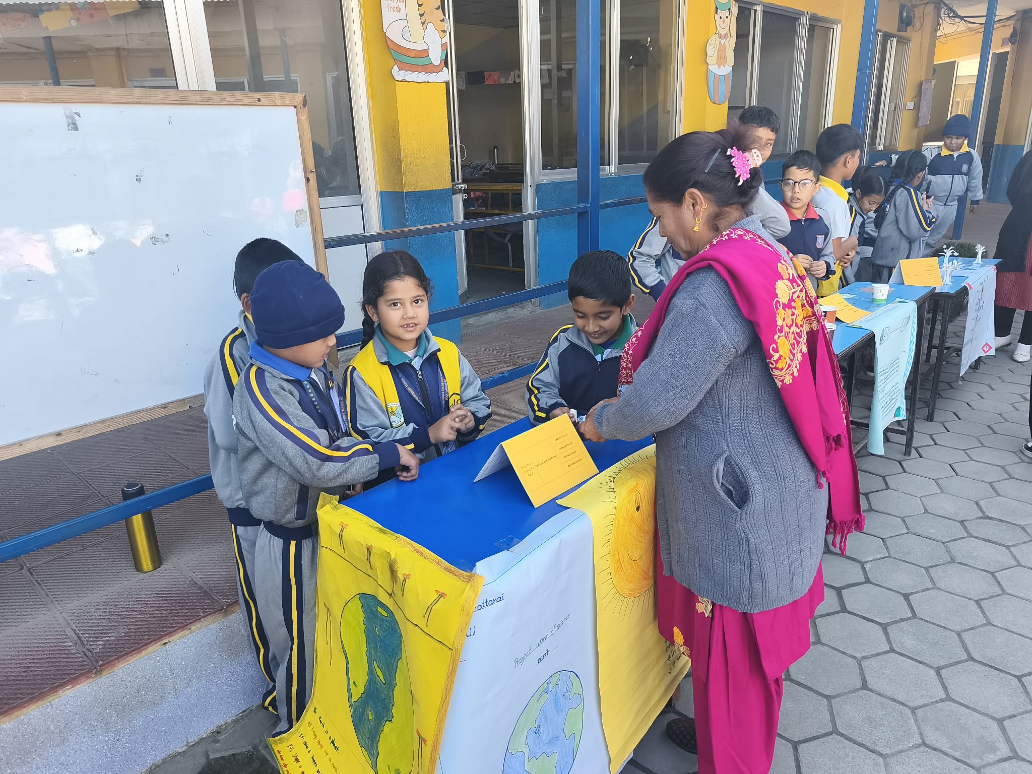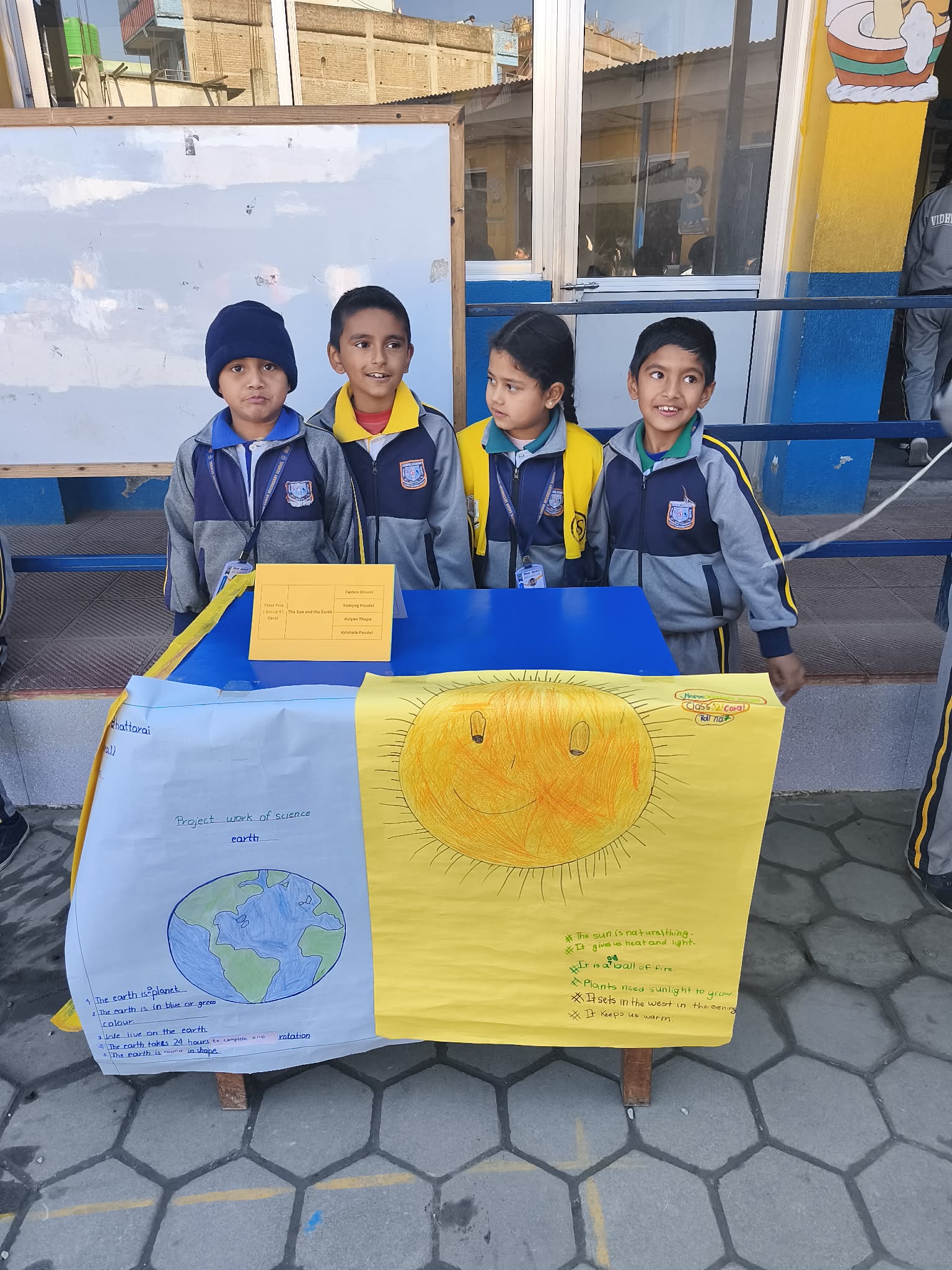 कक्षा–२ को बिज्ञान बिषयमा पृथ्वी र सुर्यको बारेमा पढाई हुन्छ । सो बारेमा कृशला पौडेल, रिदम खरेल, संयोग पौडेल र अभियान थापाले मिलेर सुर्यको बारेमा अभिभावकले बुझाउँदै थिए । उनीहरुले सुर्य प्राकृतिक शक्ति भएको, यसले हामीलाई ताप र प्रकाश प्रदान गर्ने र ठुलो आगोको गोला भएको बताएपछि अभिभावक पनि दङ्ग पर्नुभयो ।
