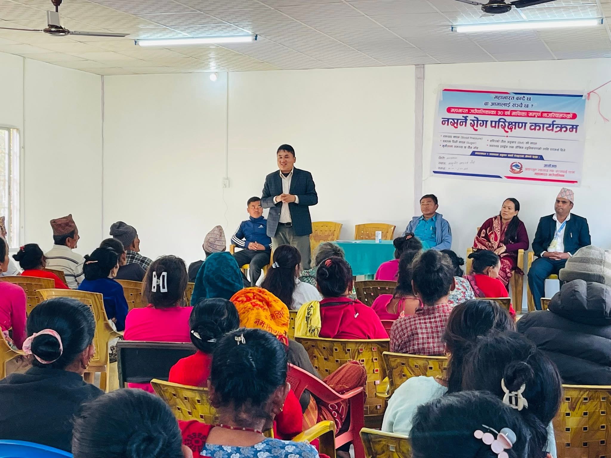 महाभारत गाउँपालिकामा नसर्ने रोगहरूको पहिचान तथा उपचार विस्तार गर्ने उद्देश्यले ‘बा–आमालाई सन्चै छ?’ भन्ने मूल नारासहित समुदायस्तरीय स्वास्थ्य परीक्षण तथा स्वास्थ्य शिक्षा परामर्श सेवा अभियान सुरु गरिएको छ।