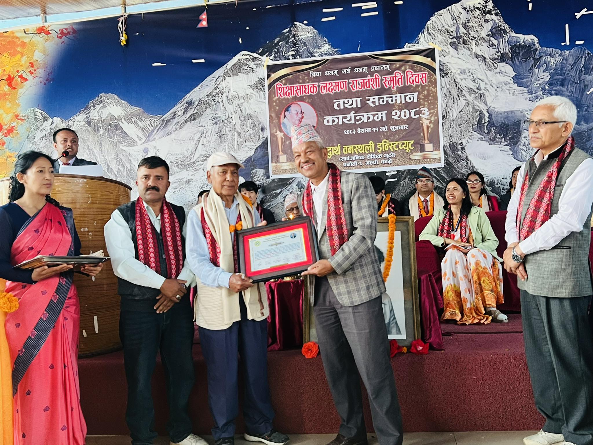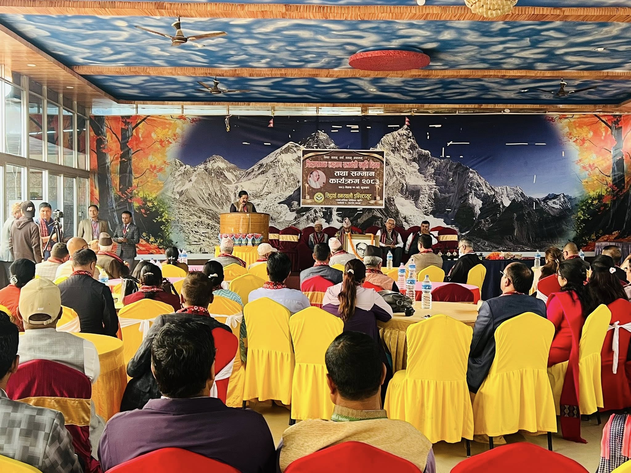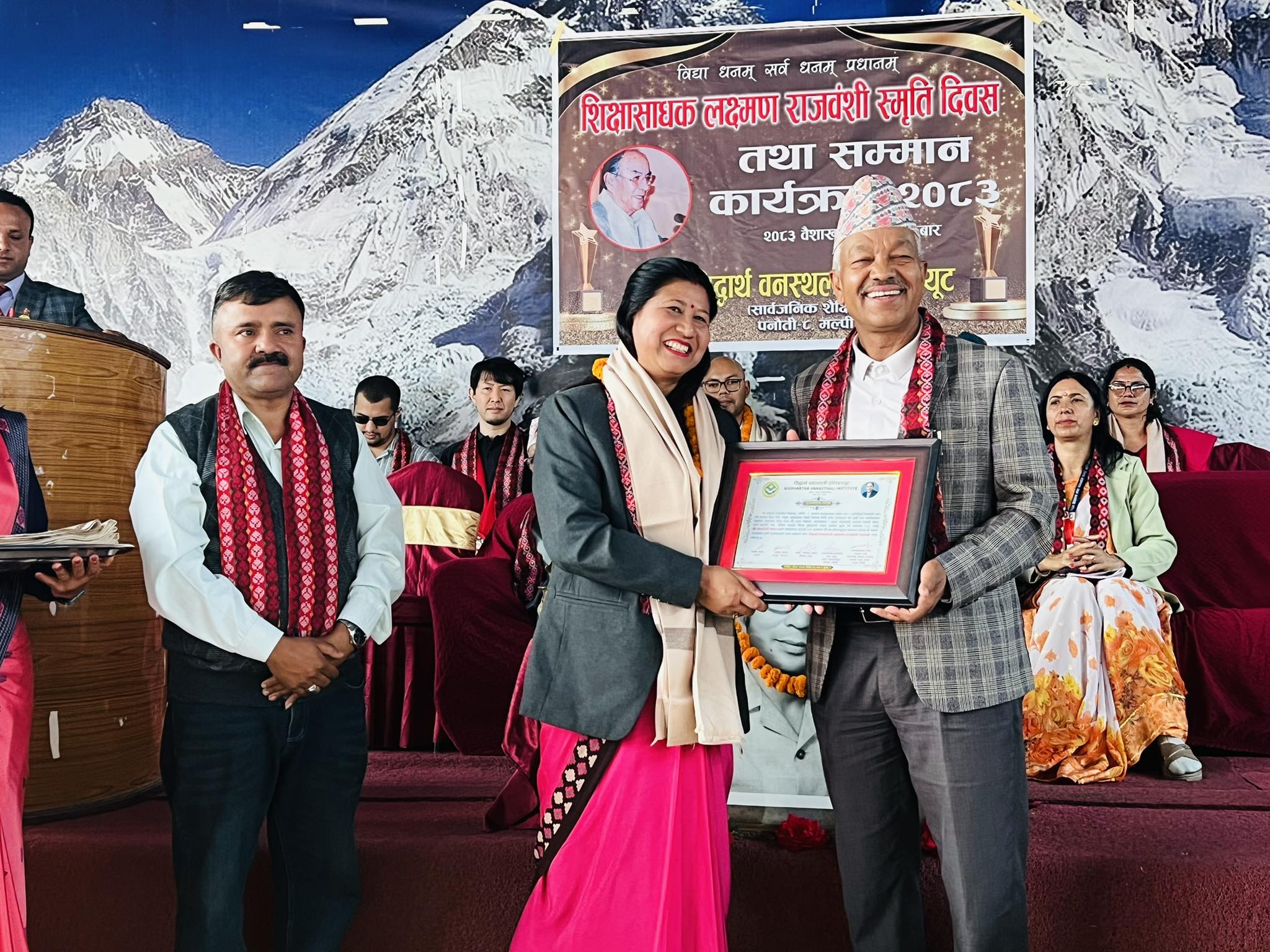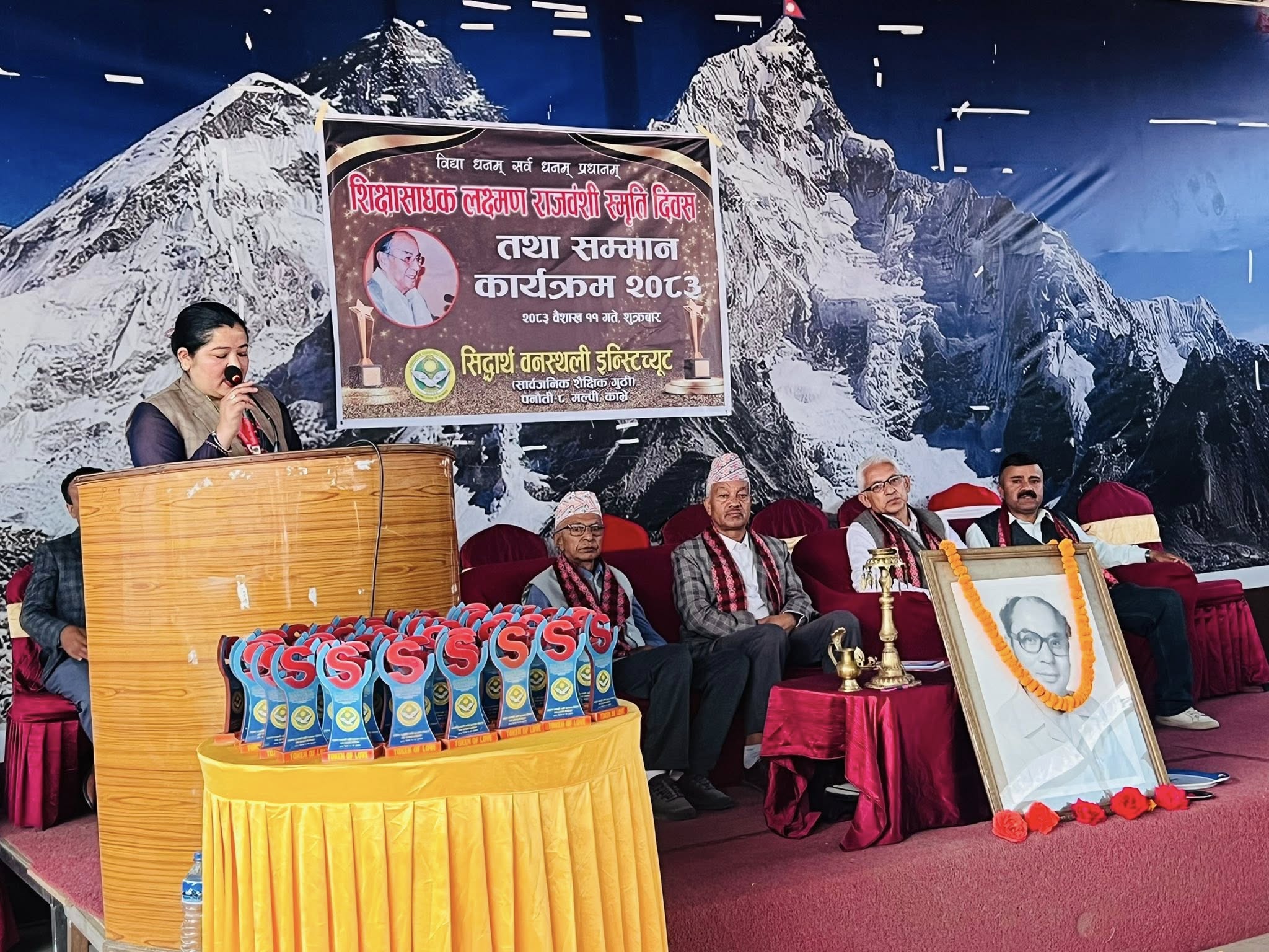 सिद्धार्थ वनस्थली इन्स्टिच्यूट पनौतीले विद्यालयका संस्थापक प्रिन्सिपल लक्ष्मण राजवंशीको स्मृति दिवसमा शिक्षा क्षेत्रमा उल्लेख्य योगदान गर्ने सामुदायिक विद्यालयका प्रअदेखि आफ्नो विद्यालयमा अध्ययन गरेर उच्च ओहोदामा पुगेका पुर्व विद्यार्थीहरु थिए ।