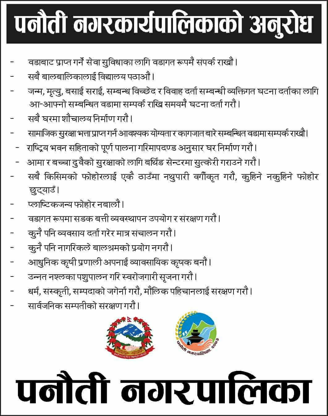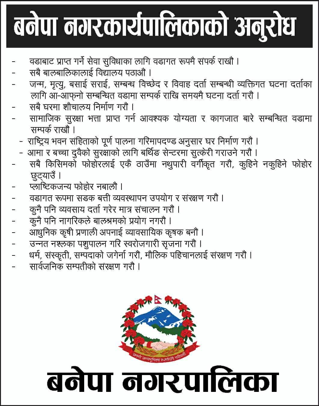 बनेपा÷ऐतिहासिक तथा पुरातात्विक सहर बनेपामा नरदेवी श्वेतकाली अजिमाको १२ वर्षे देवी नाच नचाईने भएको छ । आज लायकु डबलीमा नाच गरिने छ । आयोजकले साँझ ६ बजे लायकु डबलीमा उपस्थित…